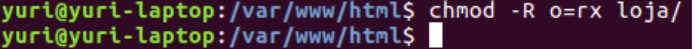 Vamos então falar para o `chmod` mudar a permissão de maneira recursiva (`-R`) no diretório `loja/`: