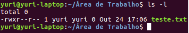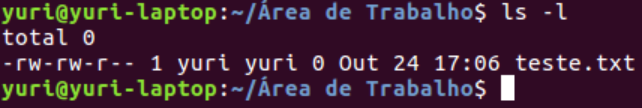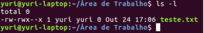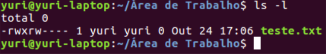 Vamos listar com a opção de lista longa para ver se ocorreu a mudança nas permissões: