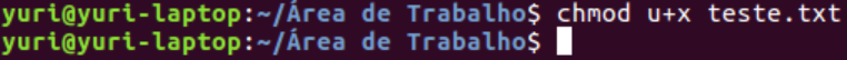 Vamos dizer para o `chmod` que queremos que o usuário dono do arquivo (`u`) tenha, além dessas permissões, a permissão de executar o arquivo.
