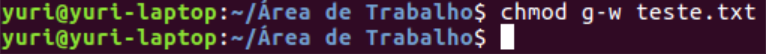 Também podemos falar para o `chmod` retirar (`-`) a permissão de escrita do grupo dono (`g`):
