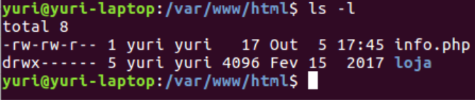 A lista retornada pelo comando `ls` é uma lista normal. Para visualizar os arquivos e suas permissões, temos que dizer para o `ls` que queremos uma lista longa (`-l`).
