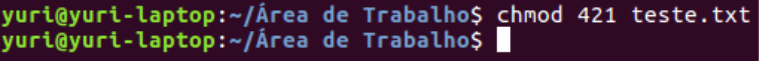 Esse comando equivale a `chmod u=r,g=w,o=x teste.txt` no modo simbólico.